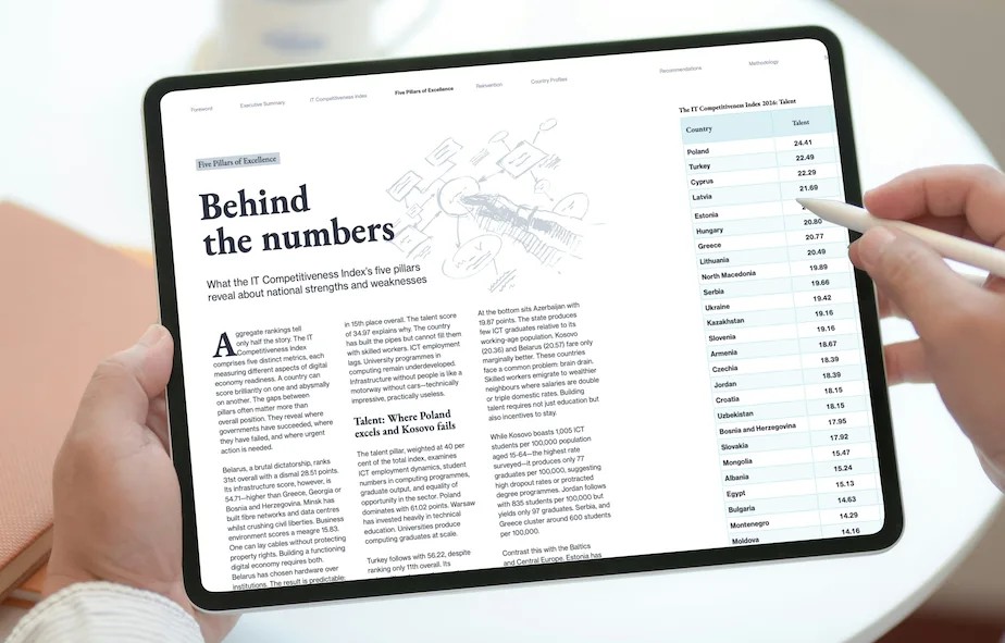 The global IT race has changed. Talent alone no longer wins. Cheap labour is no longer a strategy. And building “an IT sector” without coherence now leaks value instead of compounding it. The Future of IT Report 2026 is an independent data-driven guide for governments, investors, and institutional decision-makers who need to understand where digital advantage is actually being created — and why.